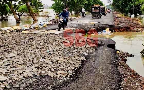 साहिबगंज - कहलगांव NH - 80 : आधी सड़क बाढ़ ने बहाया तो आधी सड़क बेहद जर्जर Sahibganj News Aug 24, 2021 Edit Sahibganj News : साहिबगंज बाढ़ के पानी के कहर से आजाद हुए साहिबगंज - कहलगांव मुख्य मार्ग NH - 80 का हाल बेहद बुरा हो चुका है। सड़कें कई जगह इतनी बुरी तरह से टूट चुकी है की एक साथ दो गाड़ी पार नही कर सकती।छोटी गाड़ी किसी तरह सड़को पर रेंगती नजर आ रही है, लोग जान जोखिम में डाल कर सफर करने को मजबूर हैं, हालांकि सड़क से पानी उतरे दो दिन हो चुके हैं, लेकिन अभी भी सड़क मरम्मती का काम शुरू नही हुआ है।आधी सड़क पानी में बह चुकी है और बाकी बची आधी सड़क किसी तरह गाड़ियों का दबाव झेल कर डटी हुई है प्रशासन की ओर से ना ही कोई सुरक्षा का इंतजाम और ना ही सड़क मरम्मत का कार्य करवाया जा रहा है।वैसे तो एन एच - 80 अपनी जर्जर हालत के लिए पहले से ही जानी जाती है, परन्तु इस बार आईं बाढ़ ने उसकी हालत को और भी बर्बाद कर दिया।Connect with Sahibganj News on Telegram and get direct news on your mobile, by clicking on Telegram.Telegram निचे दबा कर 👇 शेयर करना ना भूले